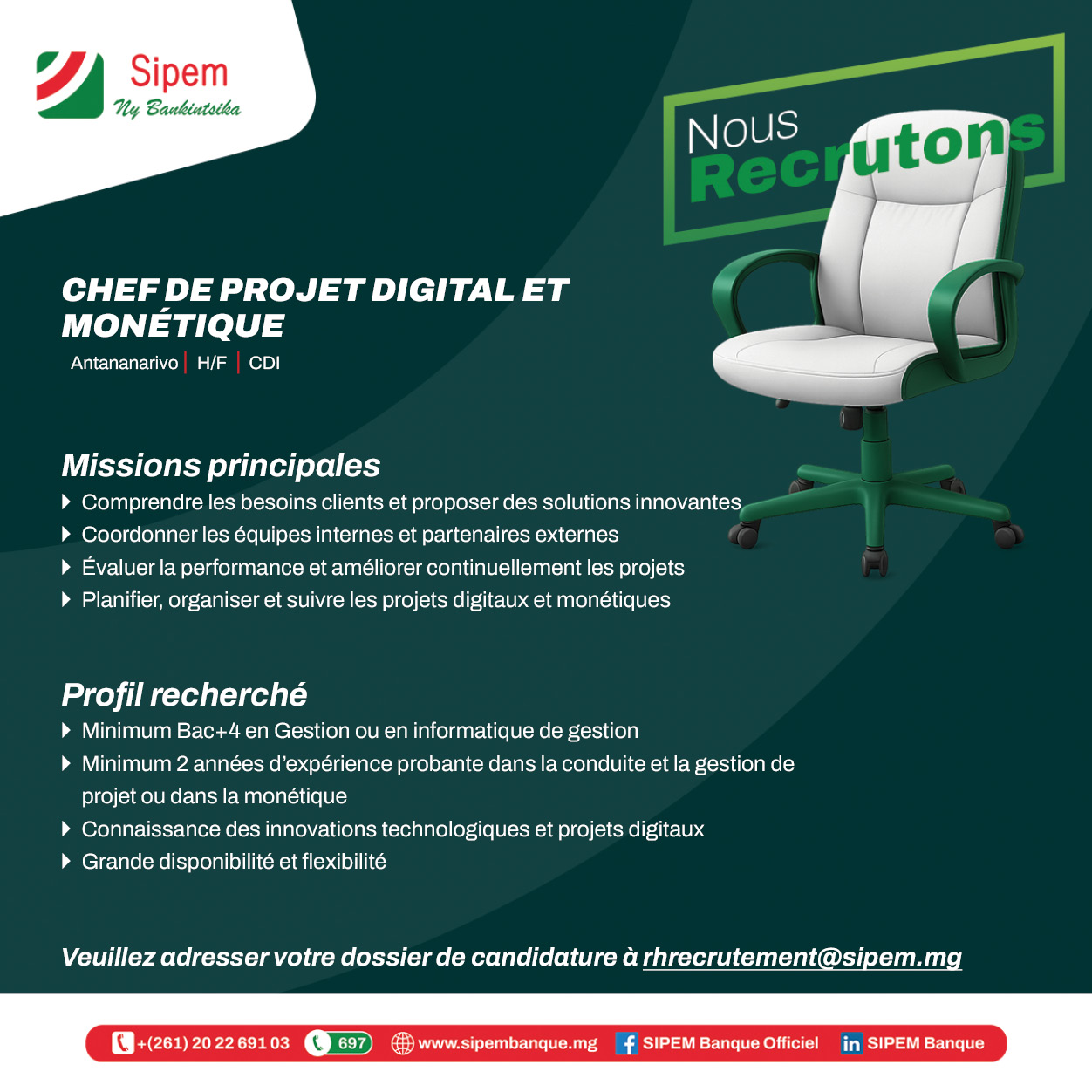 CHEF DE PROJET DIGITAL ET MONÉTIQUE